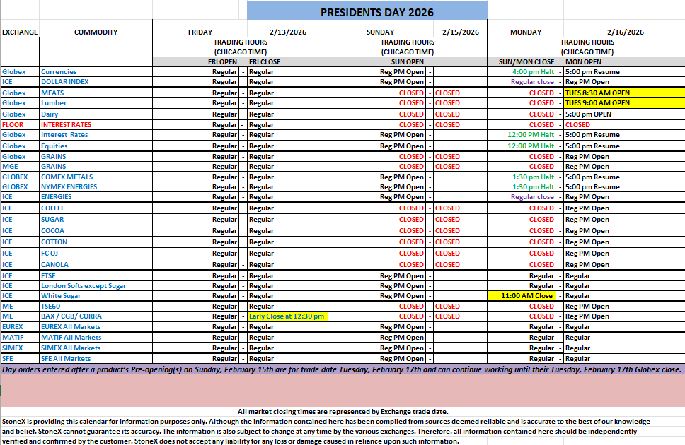 2026 Presidents’ Day Trading Hours