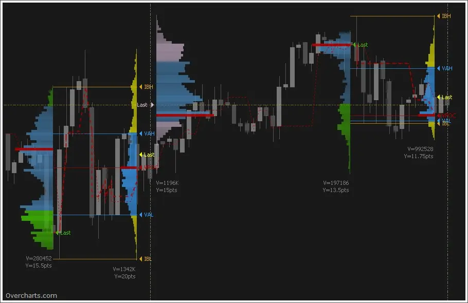 Yes. Overcharts includes TPO Profile, also known as Market Profile. It shows where price spent the most time during a session, which can help traders identify balance areas, key price levels, and potential support and resistance.