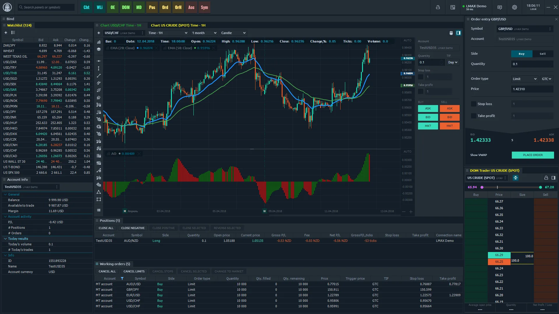 Quantower offers a wide range of chart types including Tick, Renko, Kagi, Point & Figure, Heiken-Ashi, TPO Profile, Footprint (Cluster), and Volume Profiles, with unlimited overlays, drawing tools, and full workspace customization for in-depth market analysis.