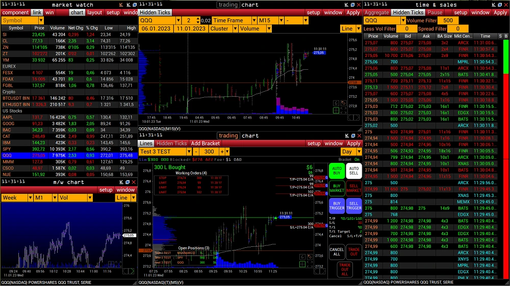 • Bid/ask imbalance, delta aggressor & tick direct tools