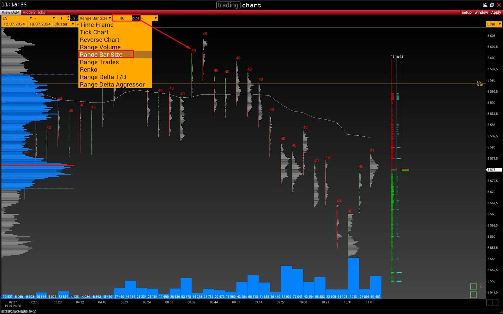 • Dynamic interactive Depth of Market (DOM) with pulling/stacking visualization